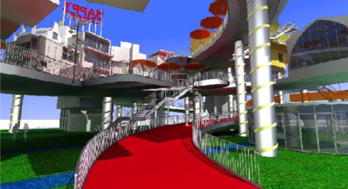團——26個平均用地規模約為2~3公頃的“展館團”,每個“展館團”可布置40~45個辦展單元,每個“展館團”的總建筑面積約2~2.5萬平方米。每個團按方便和就近的原則,設置小型餐飲、購物、電信、廁所、母嬰服務等公共服務設施。